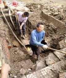 五月一日凌晨三點(diǎn)多鐘,宜城市振興大道聯(lián)通公司門前直徑400mm的鑄鐵管突然爆管。正值五一小長(zhǎng)假,為了能在最短的時(shí)間內(nèi)恢復(fù)供水,公司領(lǐng)導(dǎo)接到市民報(bào)警后,及時(shí)組織搶修人員趕赴事發(fā)地點(diǎn),根據(jù)現(xiàn)場(chǎng)情況,迅速制定搶修方案,組織搶修人員緊急開挖,并同時(shí)制作搶修配件。當(dāng)時(shí)宜城正天降大雨,搶修人員的衣服很快就濕透了,雨水與泥土形成的泥漿濺滿了他們?nèi)?,路過的市民紛紛投來了敬佩的目光。雖然一身雨一身泥,大家全然不顧,心中只有一個(gè)念頭:盡快把管道維修好保證正常供水,讓市民過一個(gè)快樂的五一勞動(dòng)節(jié)。大家齊心協(xié)力,克服一切困難,連續(xù)作戰(zhàn),最終比預(yù)計(jì)的搶修時(shí)間提前了五個(gè)小時(shí)恢復(fù)正常供水。