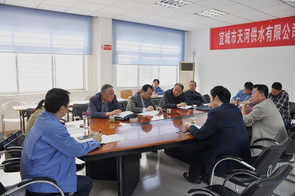 10月17日上午,襄陽市國資委副主任鄧世海在集團(tuán)公司黨委書記兼董事長李平、總經(jīng)理甄先強(qiáng)、副總經(jīng)理張華的陪同下,前往宜城天河供水公司,就宜城水廠二期改擴(kuò)建工程事宜與宜城市政府副市長譚濤、宜城市住建局局長肖俊等進(jìn)行磋商洽談,宜城天河供水公司黨支部書記金鋒、總經(jīng)理趙建、總會計(jì)師汪志輝參加了此次磋商洽談。