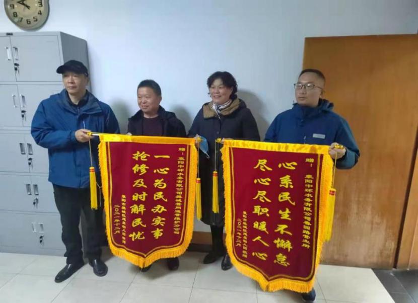 12月24日,建昌幼兒園劉校長將兩面分別繡著“一心為民辦實事 搶修及時解民憂”和“心系民生不懈怠 盡心盡職暖人心”的錦旗送到了襄陽中環(huán)水務(wù)有限公司,劉校長激動地說:“謝謝你們這么快地給我們解決了大問題!你們是真正地為民服務(wù)呀!”