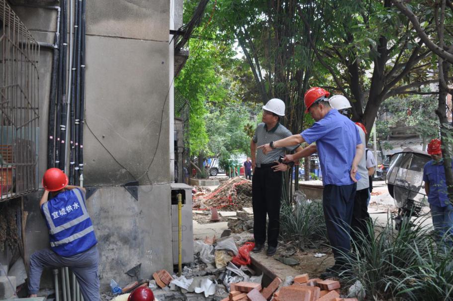 集團公司領(lǐng)導(dǎo)一行先后到水廠泵房、老舊小區(qū)改造施工現(xiàn)場、搶修工地,為堅守在高溫一線的職工送去防暑降溫用品。現(xiàn)場查看了水廠泵房運行情況,詢問了夏季用水高峰期保障供水安全的具體措施;在經(jīng)貿(mào)小區(qū)家屬樓戶表改造及消火栓安裝工程現(xiàn)場,聽取了現(xiàn)場帶班人員對工程計劃、施工進度等情況匯報,并強調(diào)黨員干部要結(jié)合下基層察民情解民憂暖民心實踐活動,深入一線,了解老百姓的所求所需,更好地服務(wù)于人民群眾。